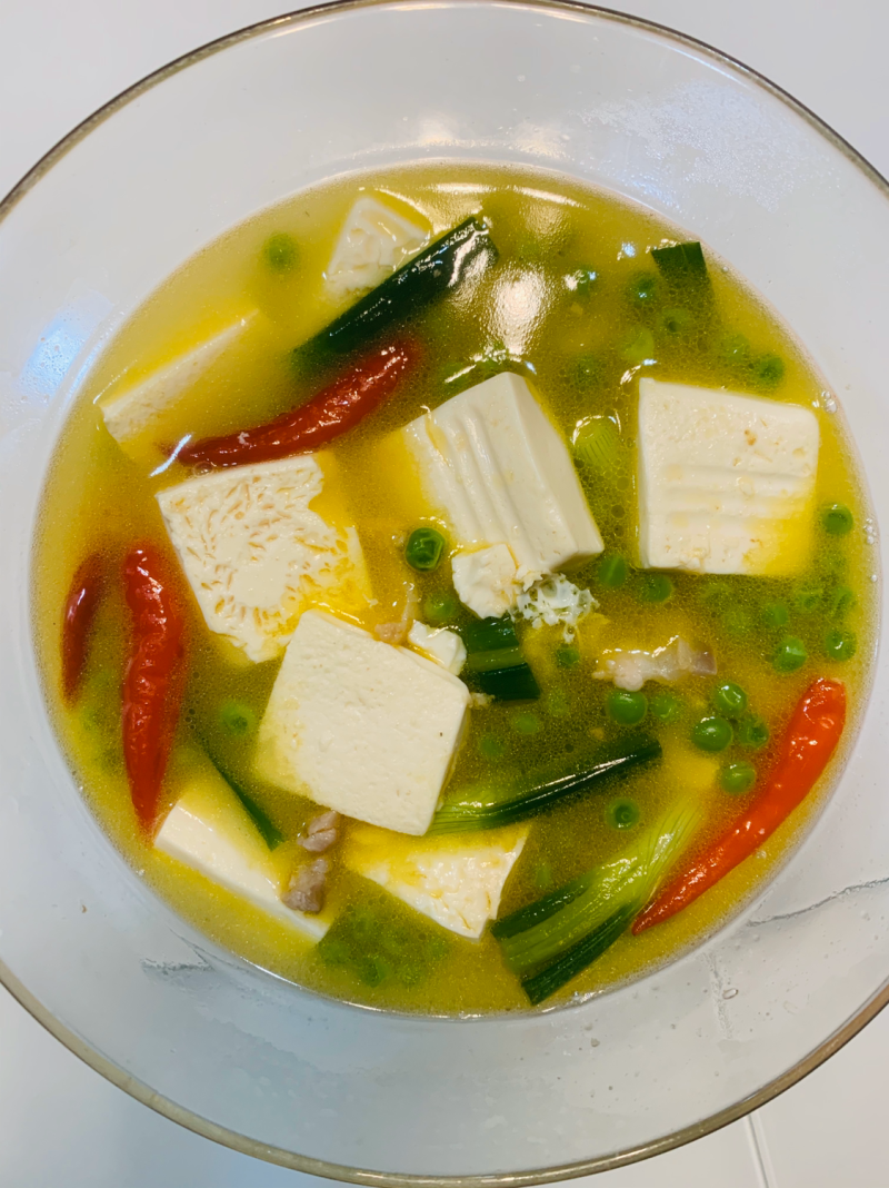 3:加入水,放入五花肉和4个泡椒,姜片。
