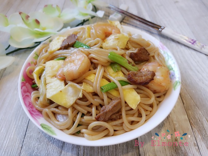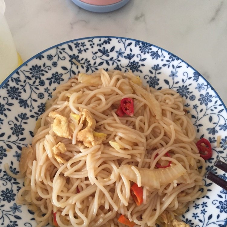 1:锅里烧水,水开后放入干米粉,开锅后小火焖煮至米粉半软烂(炒粉用的,不需要太软烂),煮好后捞出冷水冲洗备用。
