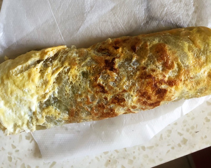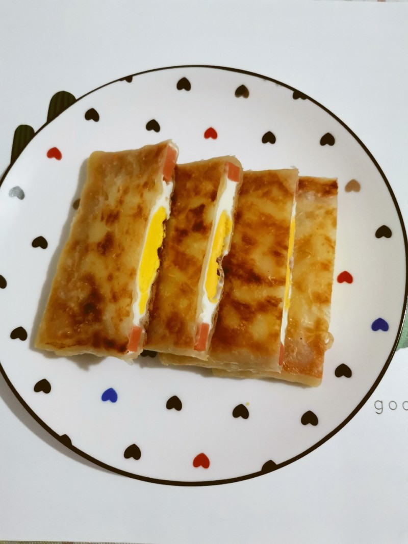手抓饼1张;鸡蛋1个;火腿肠1根;