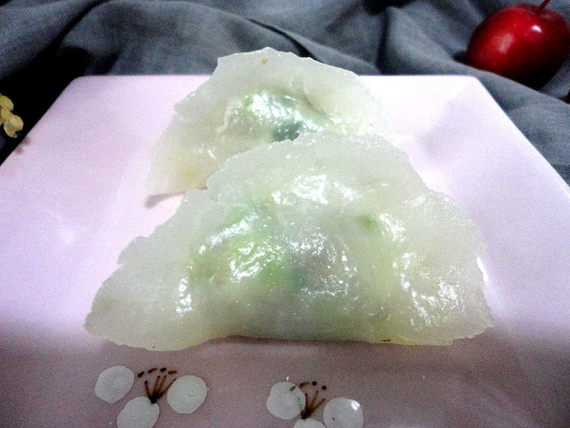 20:蒸锅提前加热,水开后将盛着水晶饼生坯的蒸屉放在蒸锅上,盖上盖子,大火蒸6分钟;不要过度锅,防止皮子被撑破开裂。