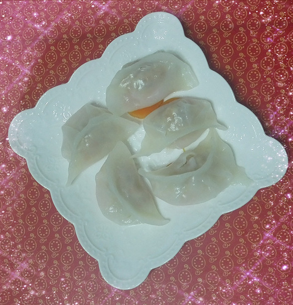 17:虾饺饱满,微微透明(皮擀厚了,还不够透明)
