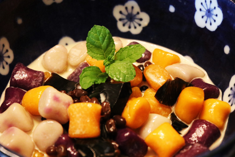 珍珠粉丸100g;芋圆100g;龟苓膏10g;
