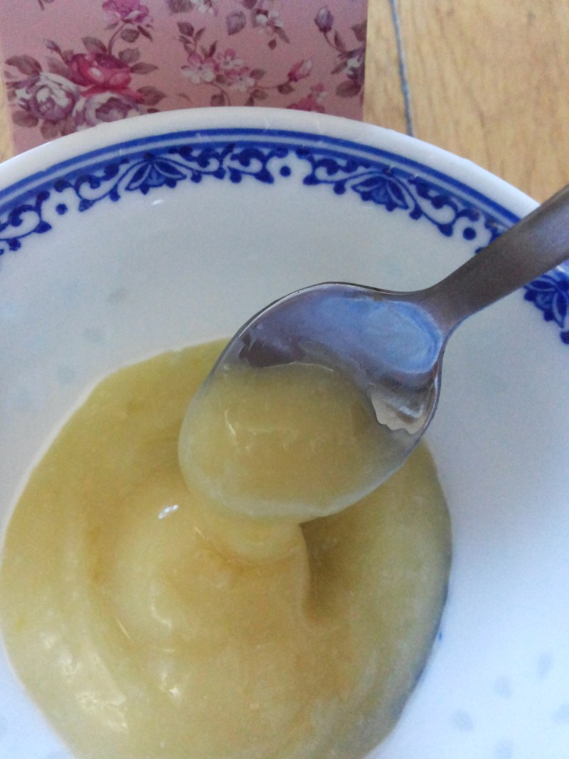5:一直搅拌到非常黏稠的时候少加一点醋,一定要少加哟!~