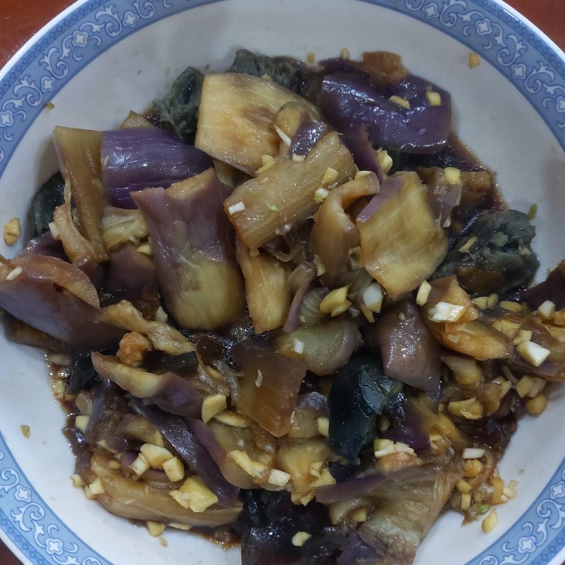 4:蒸熟的茄子沥干水,冷却。