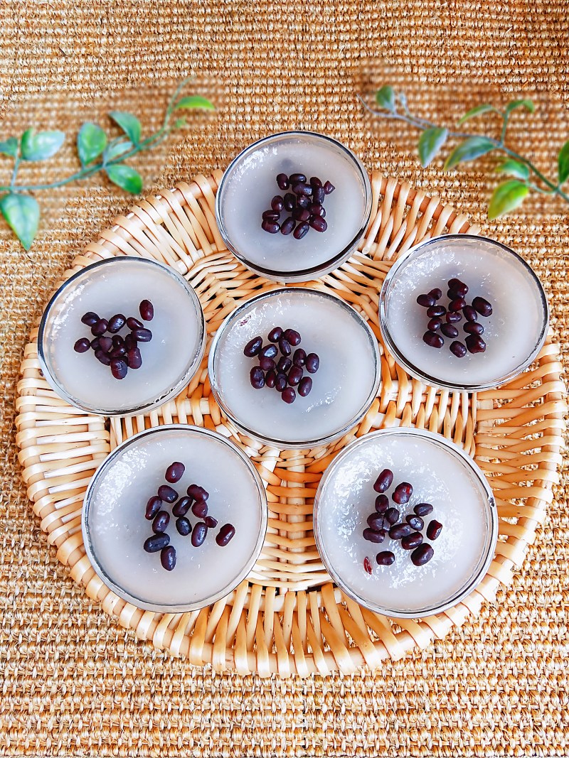 3:准备几玻璃小碗,碗中放入蜜红豆。
