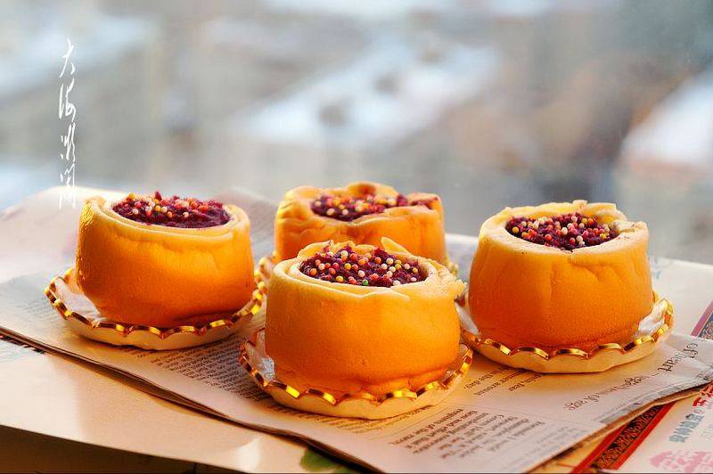 11:将麦片紫薯泥装入空心中,撒上少许糖豆,OK!