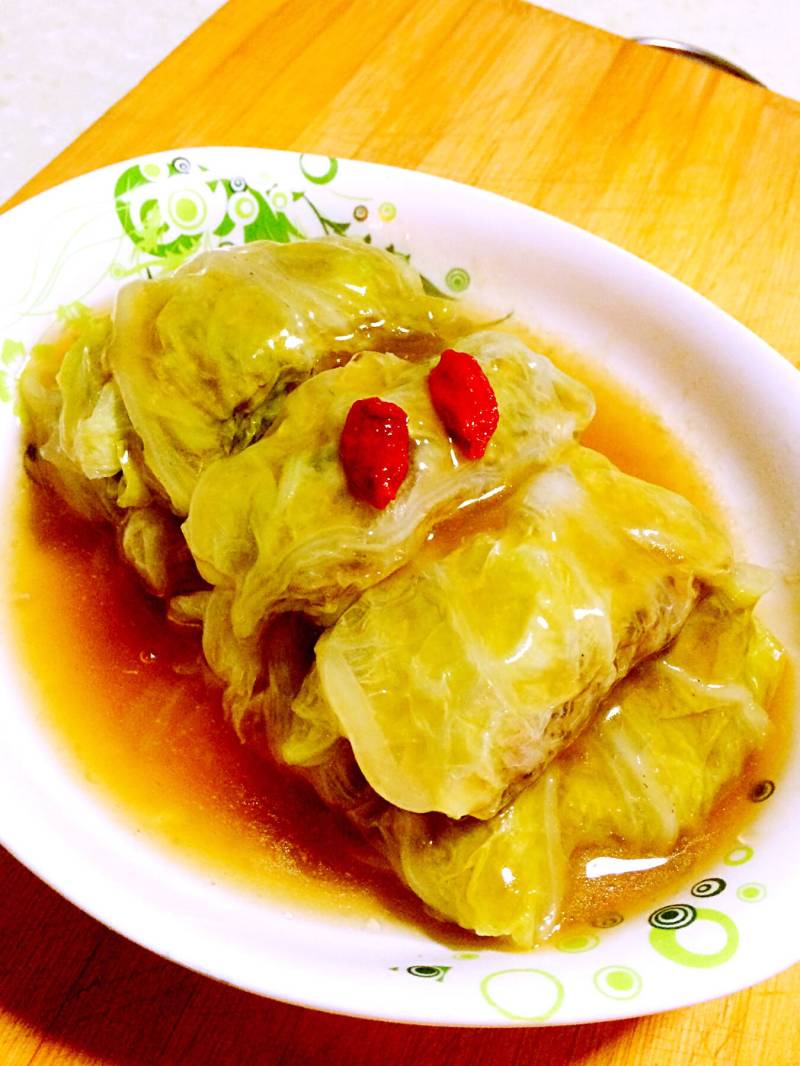 15:将汤汁浇在白菜卷上即可。