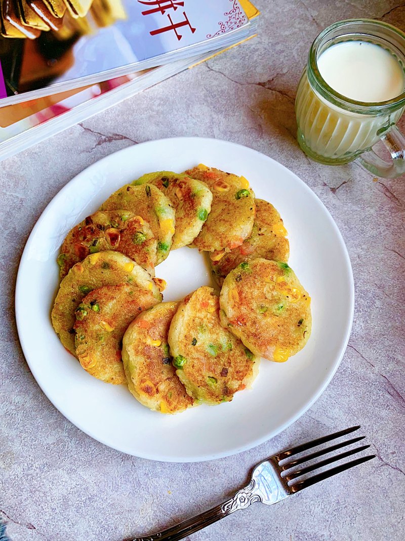 玉米青豆粒适量;面粉100克;牛奶适量;