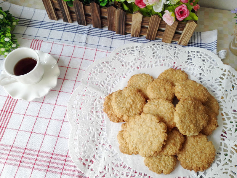 9:烤箱预热,170度约中层烤18分钟,(我家烤箱150度中层10分钟,最后放上层烤了5分钟),上色后关火焖10分钟即可。烤十分钟后就要观察,饼干面上和底部不要烤焦,