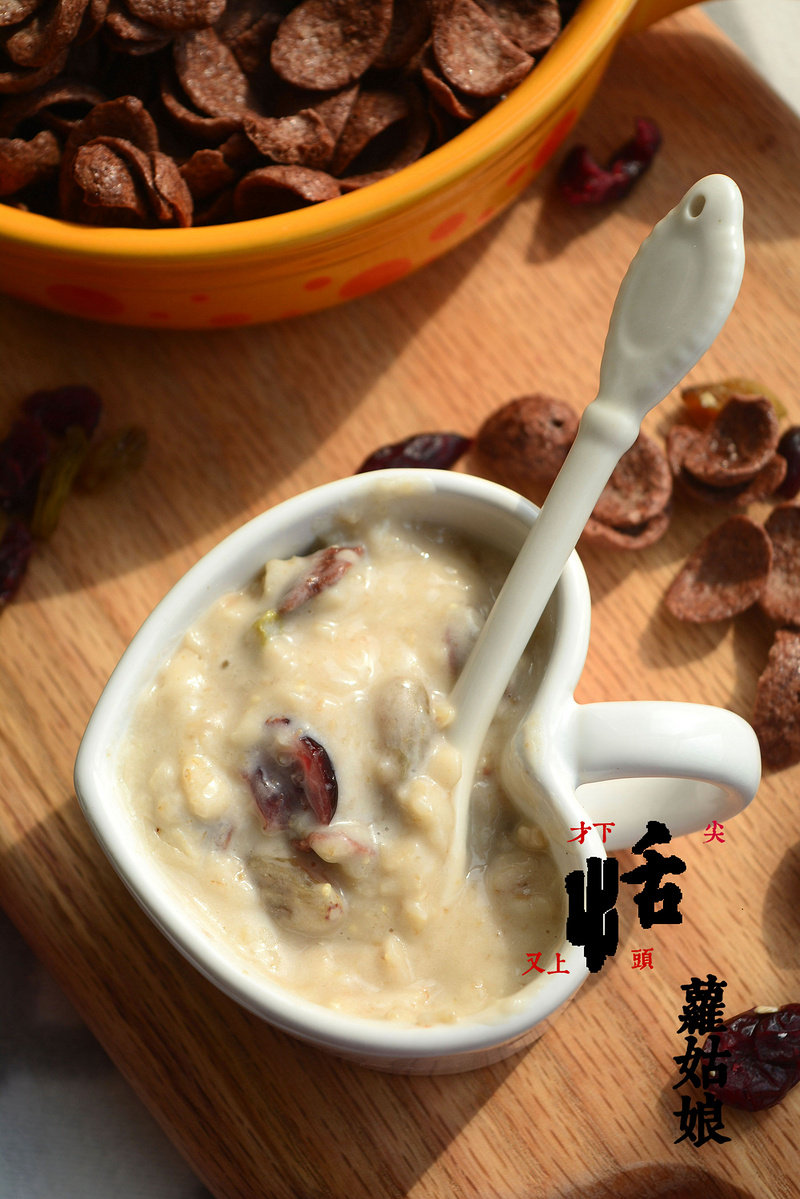 3:再煮几分钟,加入适量的葡萄干、蔓越莓等