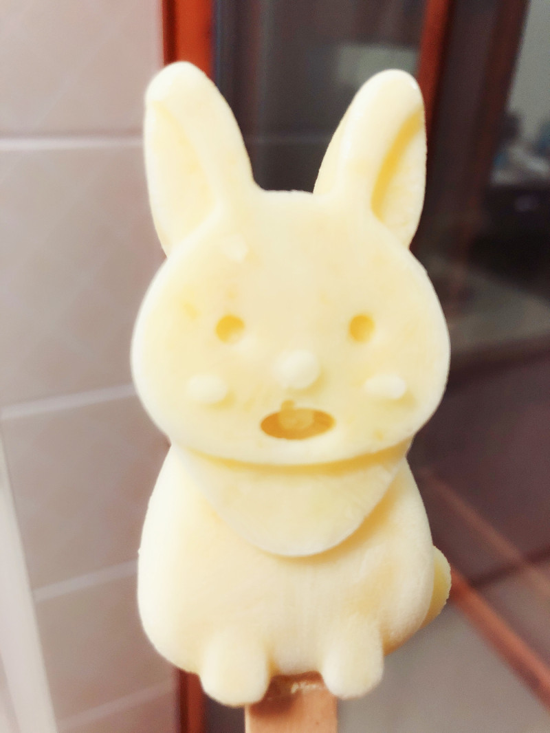 1:芒果榨汁后,加入酸奶和白糖,倒入模具后冷冻几个小时即可。