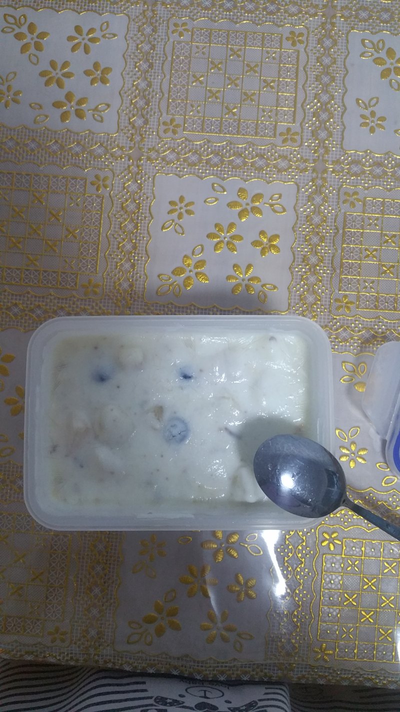 5:放入自制酸奶【因为是软膜,所以底下垫一个硬一点的托盘,好移入冰箱冷冻】