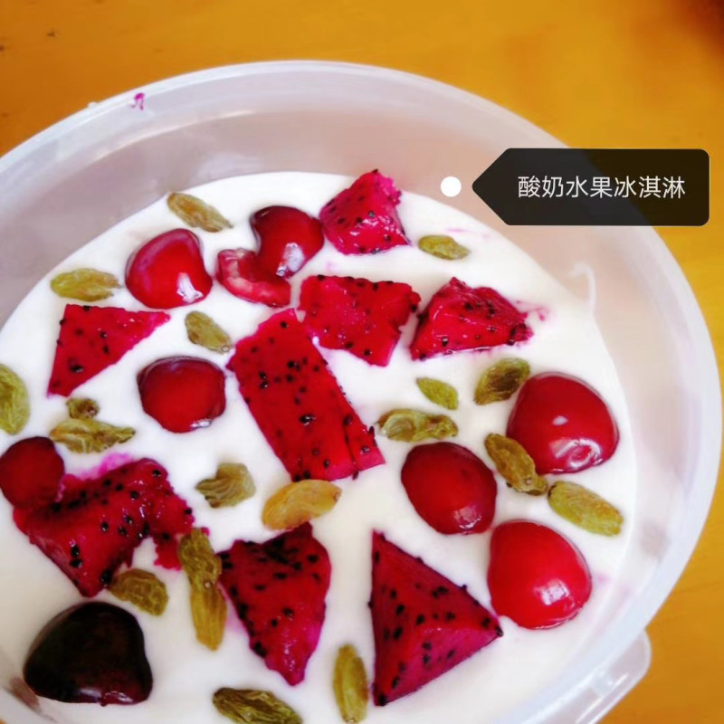 4:我家的酸奶是自己做的,糖可根据自己的口味添加,随时可以吃到酸奶水果。