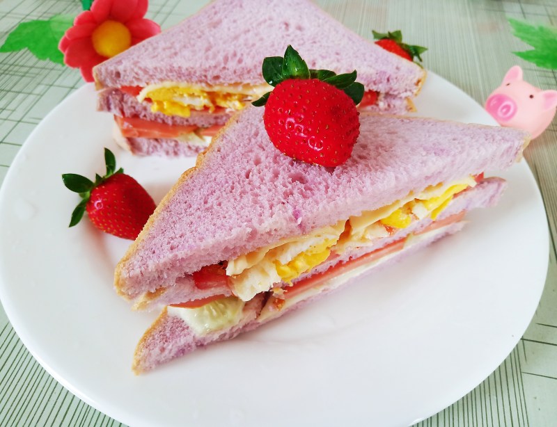 吐司3片;鸡蛋2只;火腿2片;