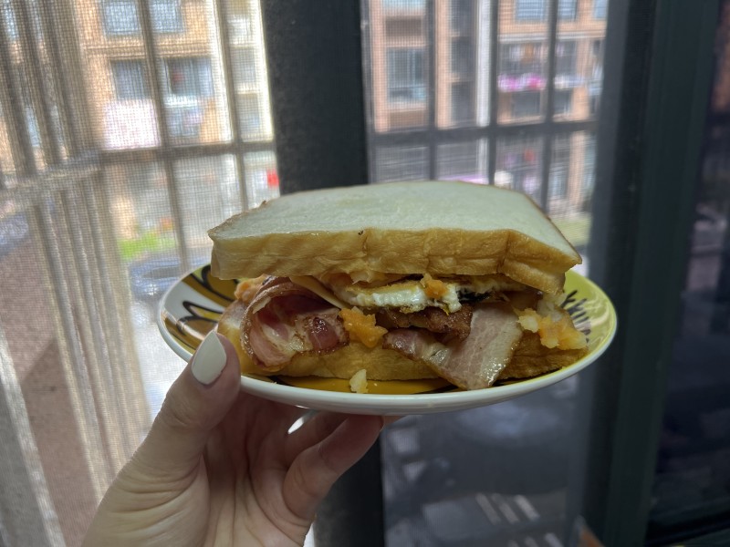 8:蟹肉煎蛋三明治就制作完成了。
