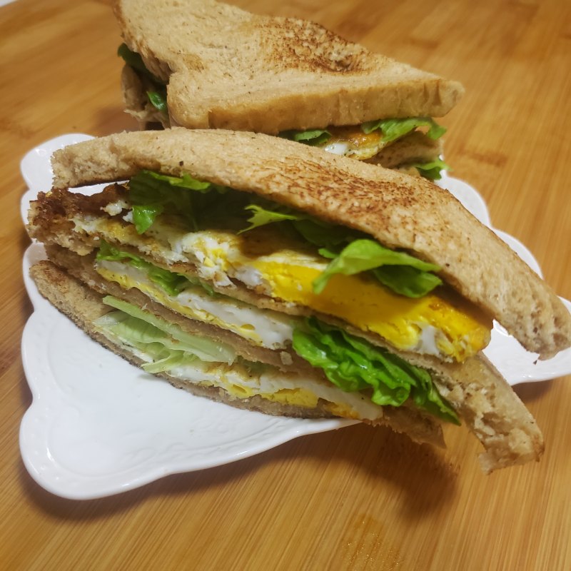 生菜叶2片;煎鸡蛋2个;