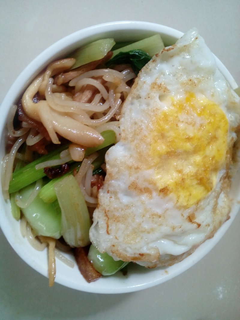 5:最后再加一个少油的煎鸡蛋,就可以了,因为我是个孕妇,所以吃的比较清淡,像调味料鸡精,酱油类的都是尽量少吃的,有喜欢吃的朋友都是可以自己随意加的。