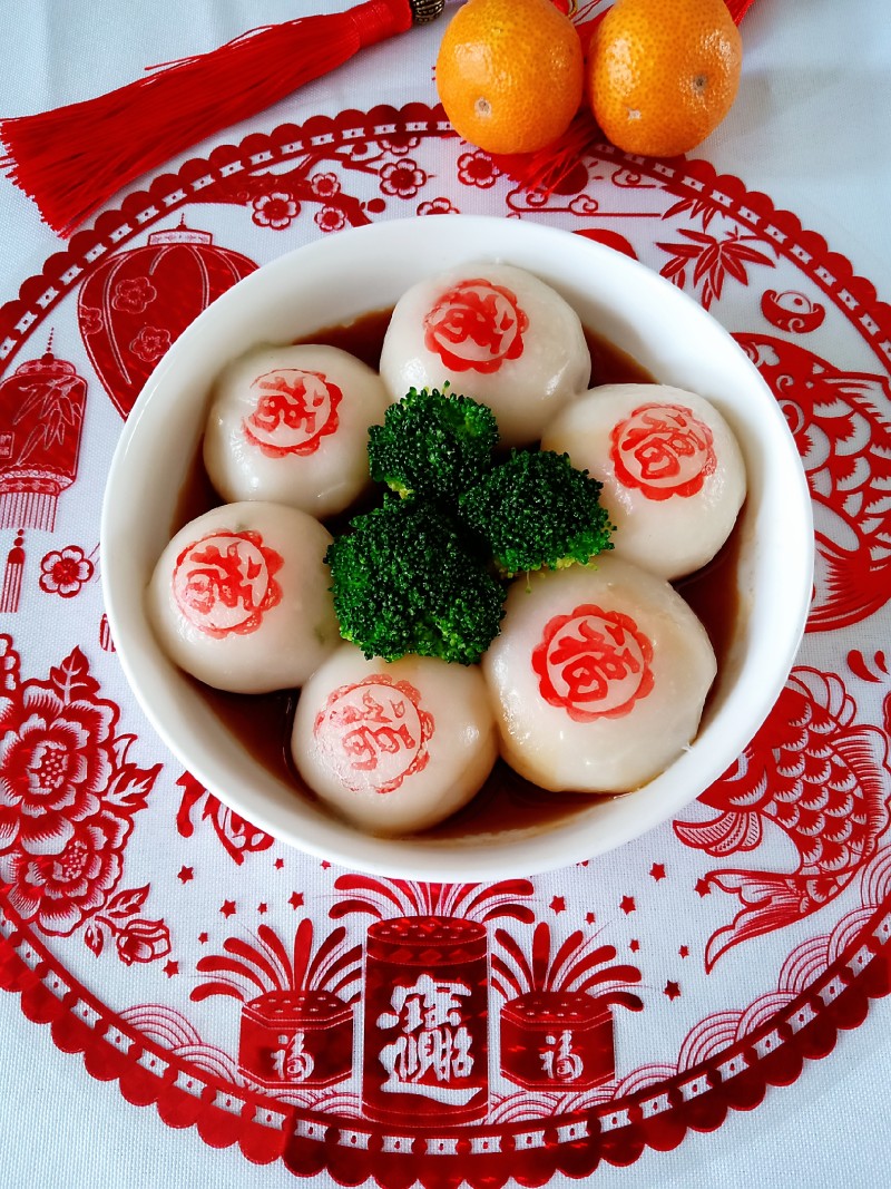 14:将食用色素调和好后在汤圆上印个福字,这样就更增加了过年的气氛。