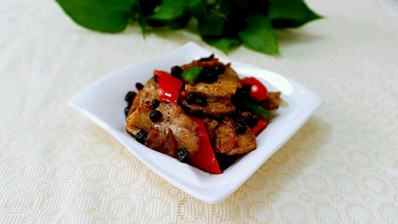 五花肉1块;青椒1个;红椒1个;豆豉1勺;