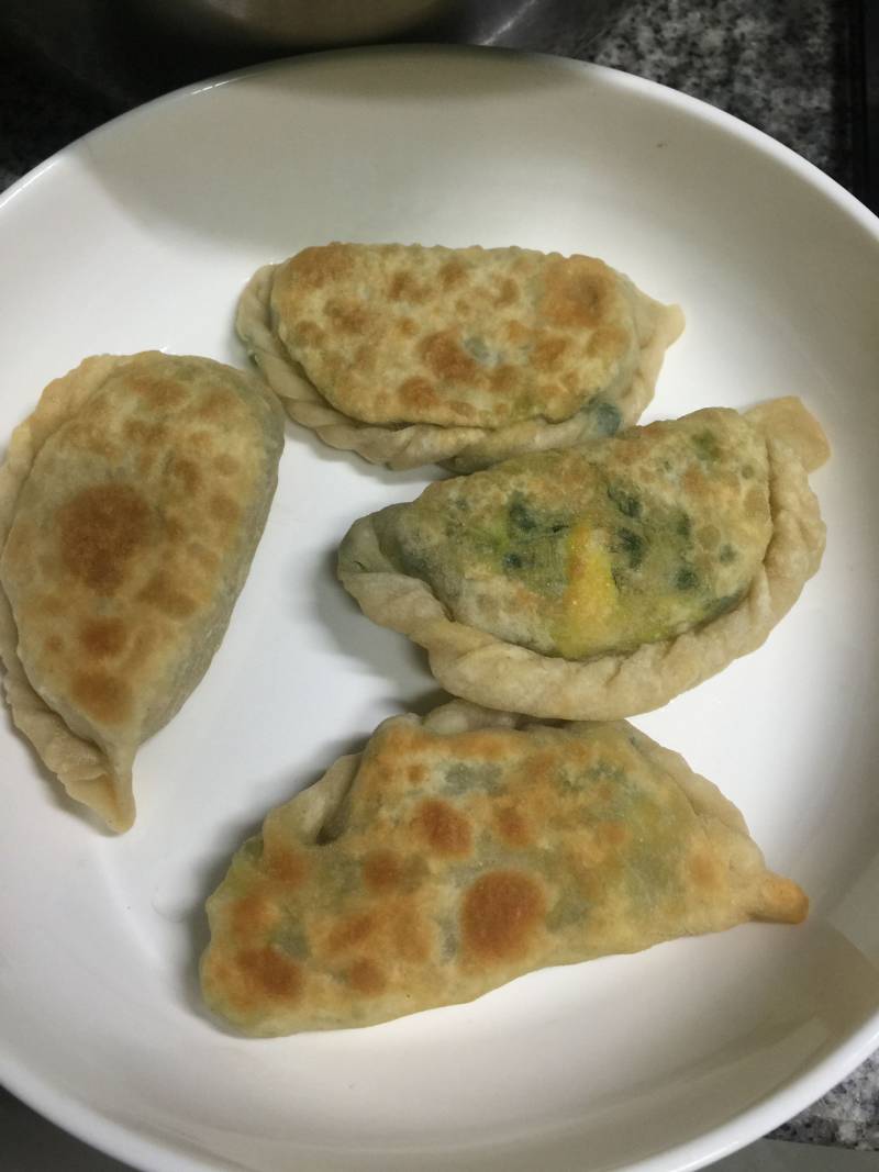7:包好后加油放平底锅,烙到两面金黄即可。