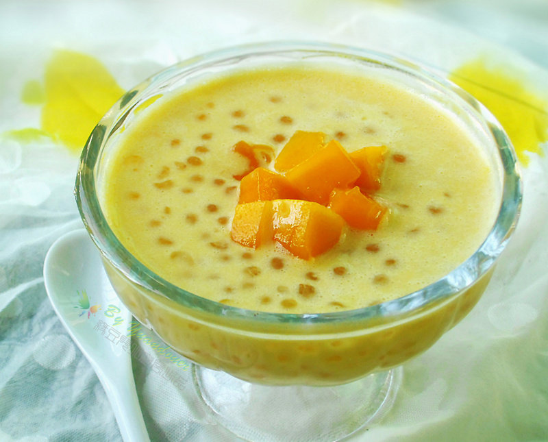 10:加半个芒果装饰香浓的芒果西米露就做好了。