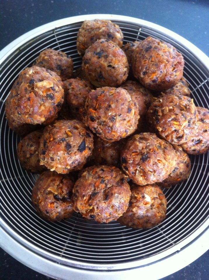8:锅里多倒些食用油烧热,放入肉馅炸成丸子