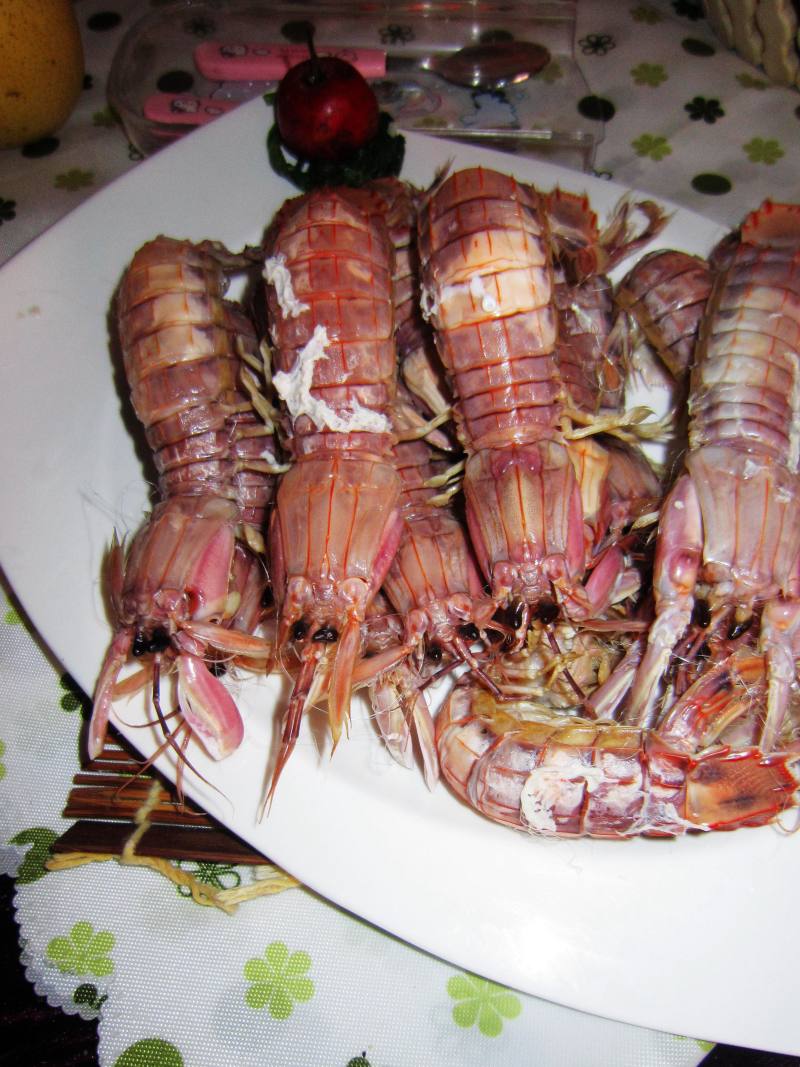 4:蒸好的虾爬子变成了红色在一开锅的霎那间就被鲜美的味道所震撼了