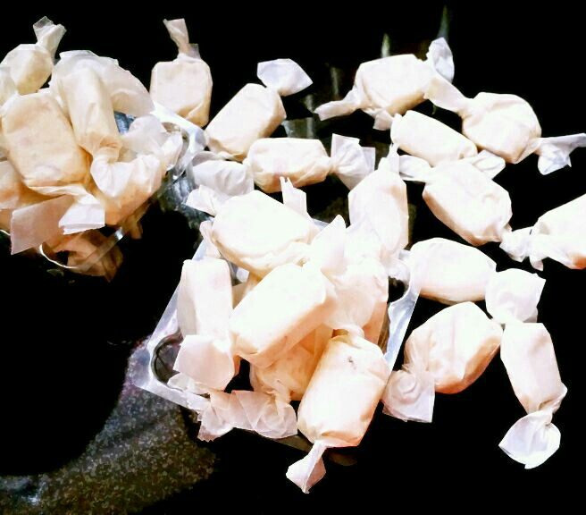 5:切成块后用糖纸包好即可(夏天可真不好包装,从冰箱拿出来一会就化,开始沾手,还是冬天适合做牛轧糖)。