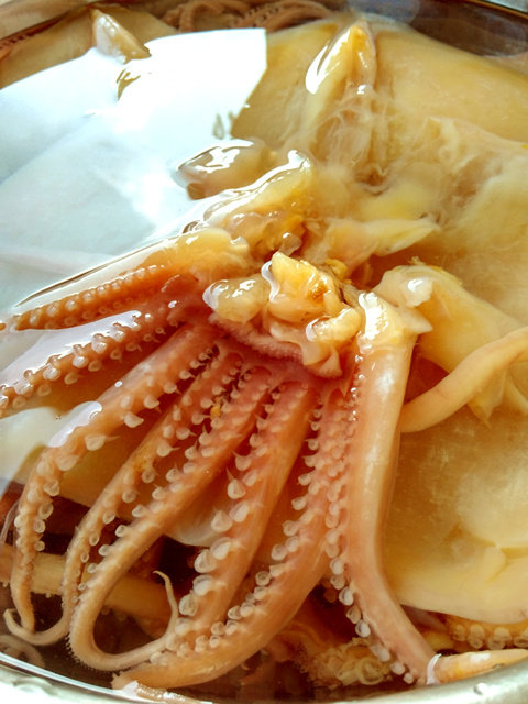 12:倒去碱液,用大量水冲洗鱿鱼,