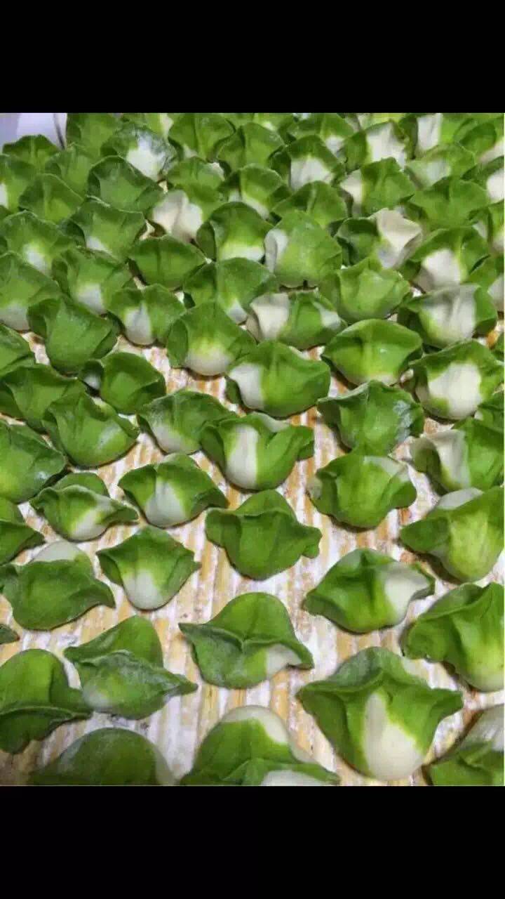 1:用青菜、如韭菜,芹菜叶打汁和面,一半青菜汁和面,一小半白水和面、