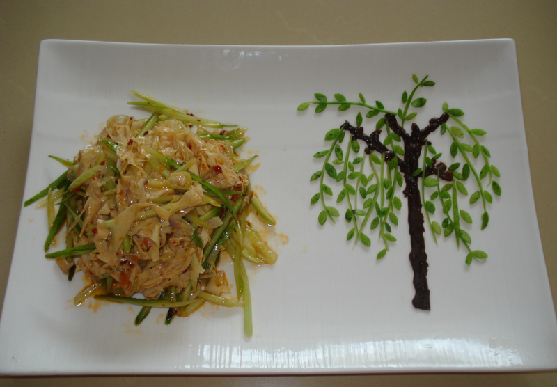 6:放盐,生抽,陈醋,芝麻油,鸡精搅拌均匀调味,调味。