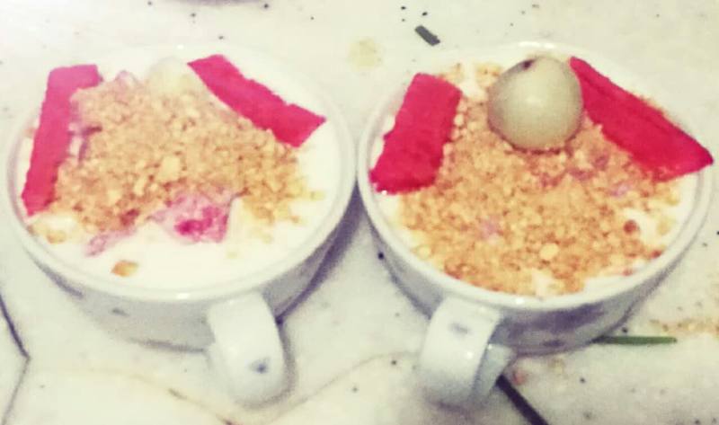 2:调试好口感酸奶加入水果碎混合。