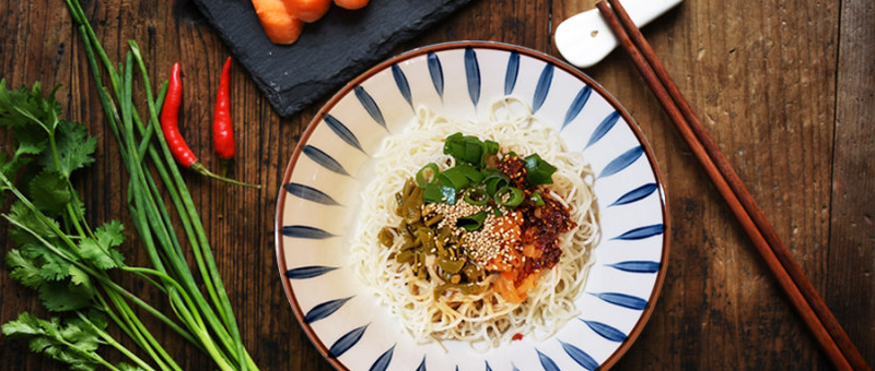 5:面条再入漏勺,回开水锅内烫热。加入配菜和调料拌匀就可以了。