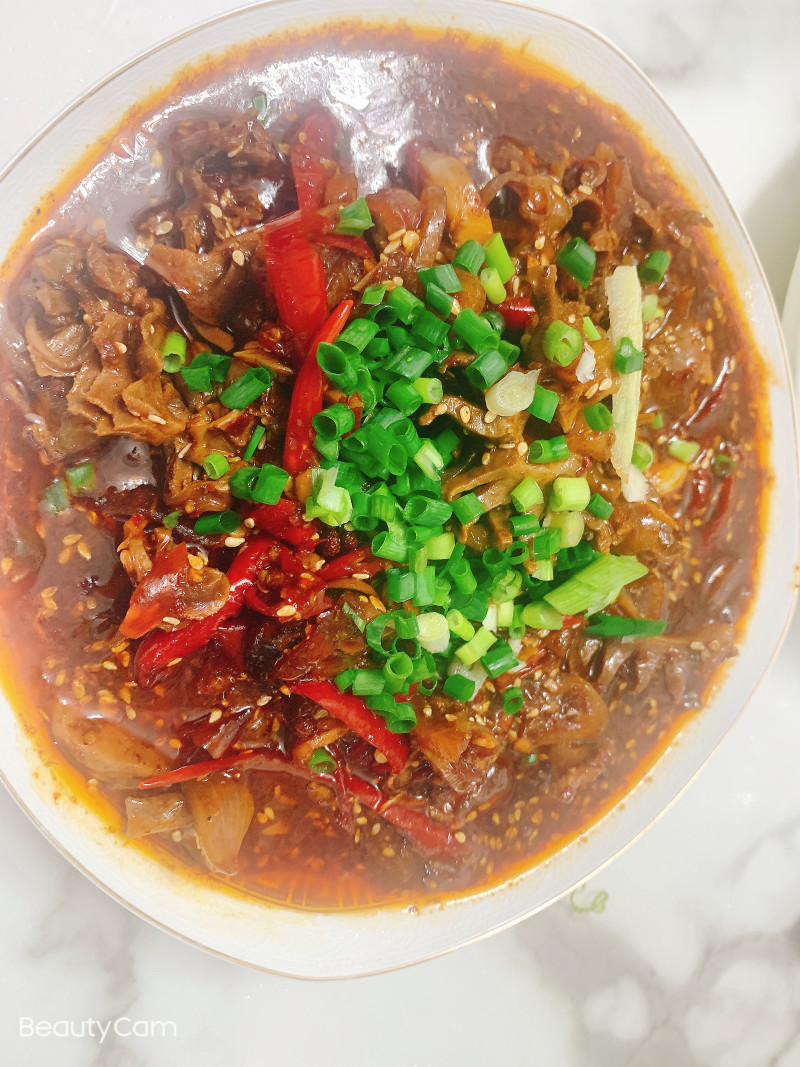 3:加入适量清水煮十分钟加入适量盐和鸡精调味收汁即可,出锅喜欢的可以放点芝麻花椒油。
