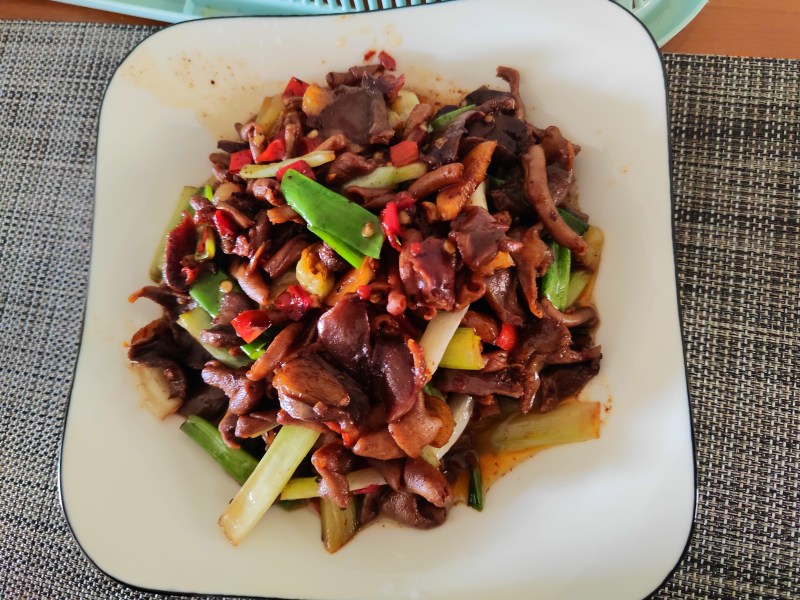 6:热油锅,倒入鸭胗。。滑炒片刻捞出备用。