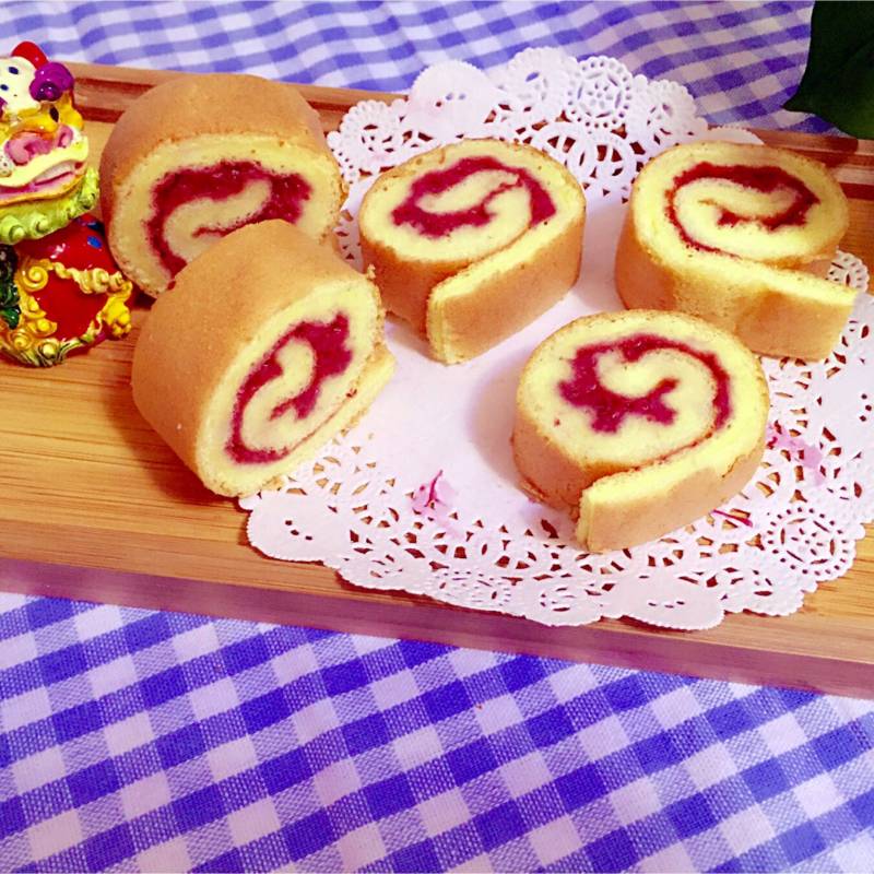 15:凉了出模,切边,趁热抹酱,卷起。冷藏一会定型。