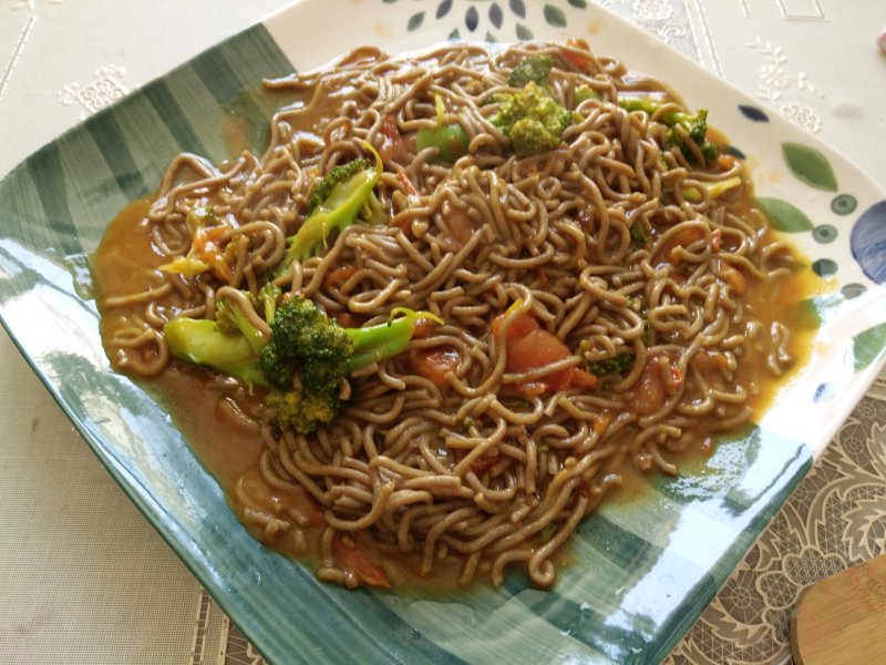 西红柿1个;西兰花1朵;荞麦面1袋;