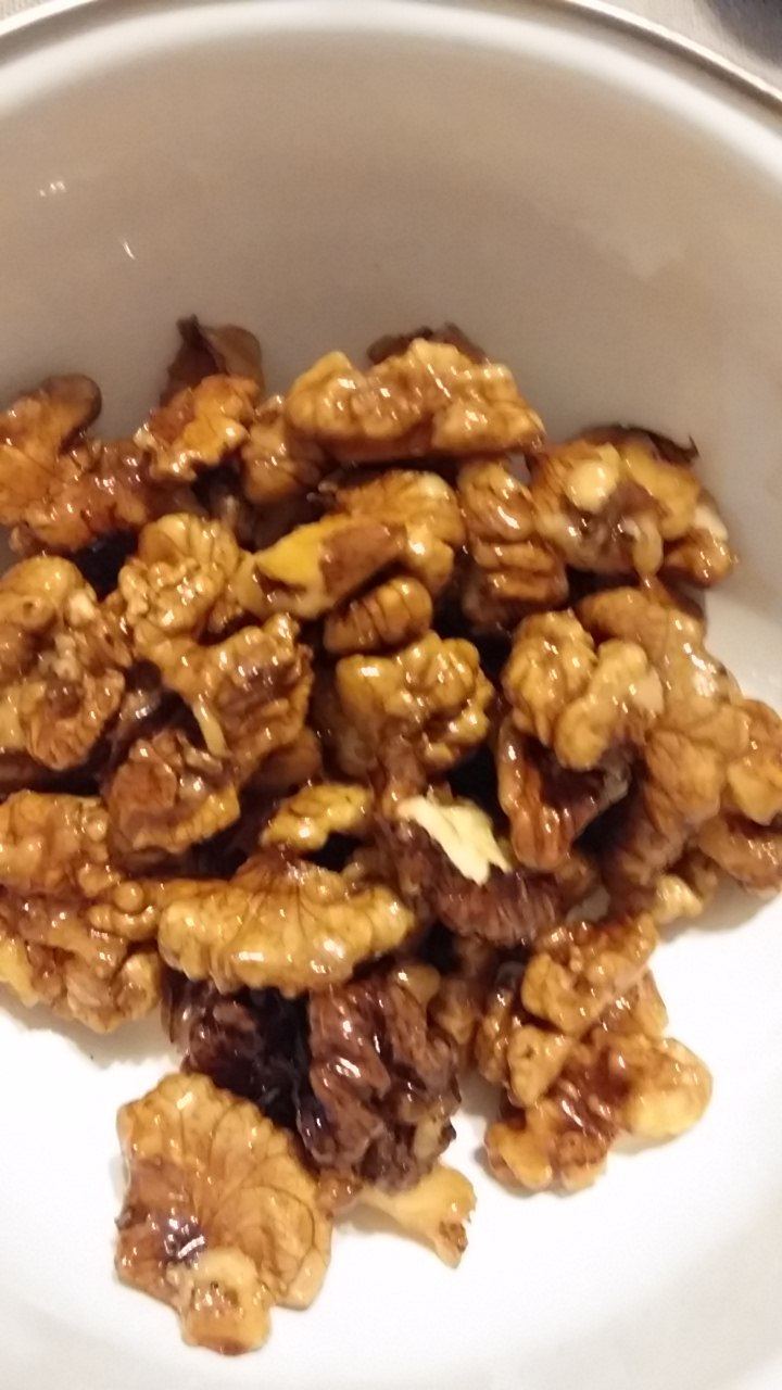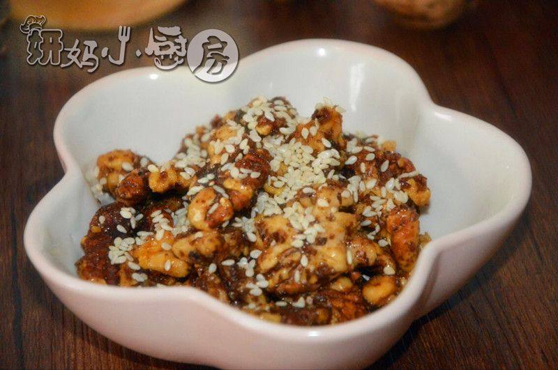5:炒至糖浆浓稠,熄火,静置15分钟,让核桃肉更入味。