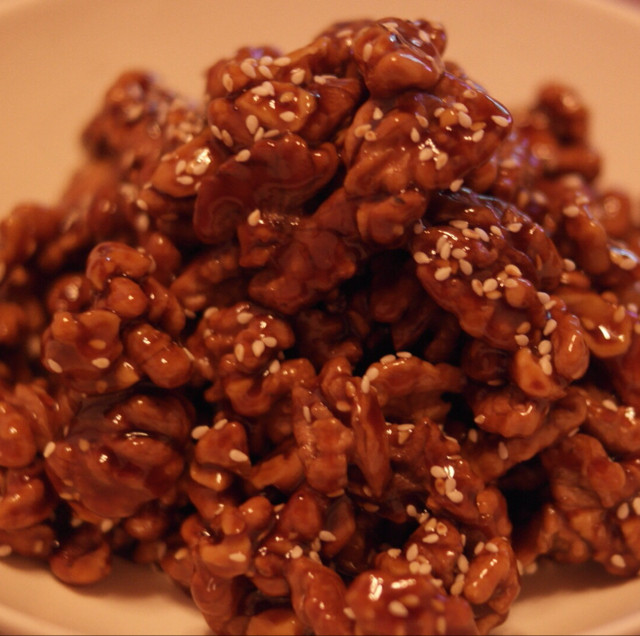 7:营养又香甜的琥珀核桃仁就做好了,核桃有健胃、补血、润肺、养神等功效。如果你和我一样,也不爱吃核桃,那么这样做一下,你肯定会爱上核桃的呵呵。