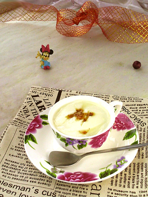 5:将熟桨倒入生桨里,拌至没有粒状,再加入糖桂花,搅匀;