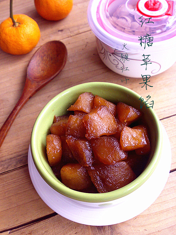 7:成品图,煮熟的苹果片完全浸入了红糖的味道,软软甜甜的。