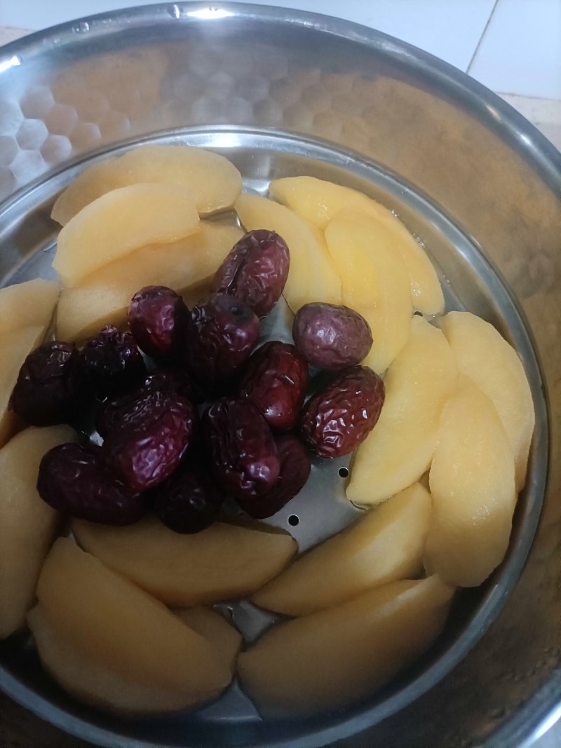 5:再下苹果片,大火烧开,转中火,煮10分钟,再下红糖。