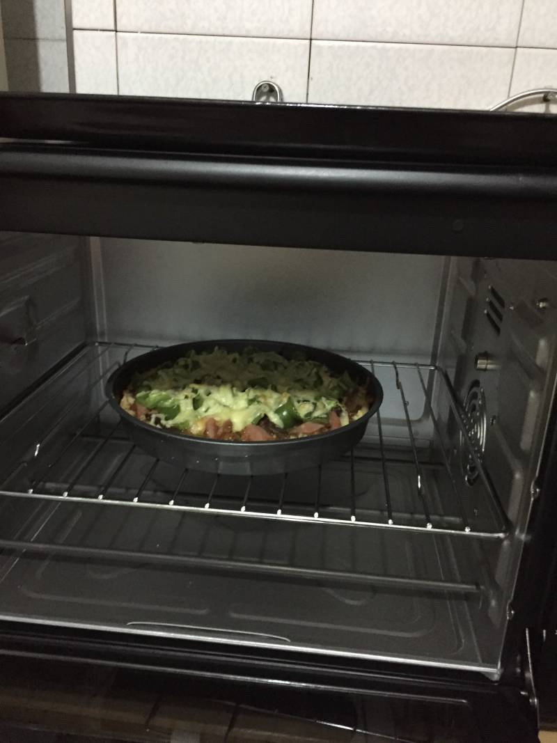 5:放入烤箱,上下火200度,20分钟。香香的披萨出炉啦