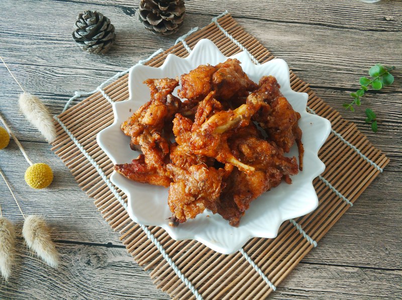 鸡叉骨腌时间长点更入味。炸时沾一层薄粉即可。