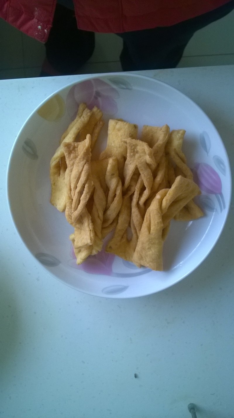 1:面和好后醒20-30分钟,擀成薄片,越薄越好。切成6-7厘米长4-5厘米宽的长方形,中间划上一刀,两边分别留出2厘米。