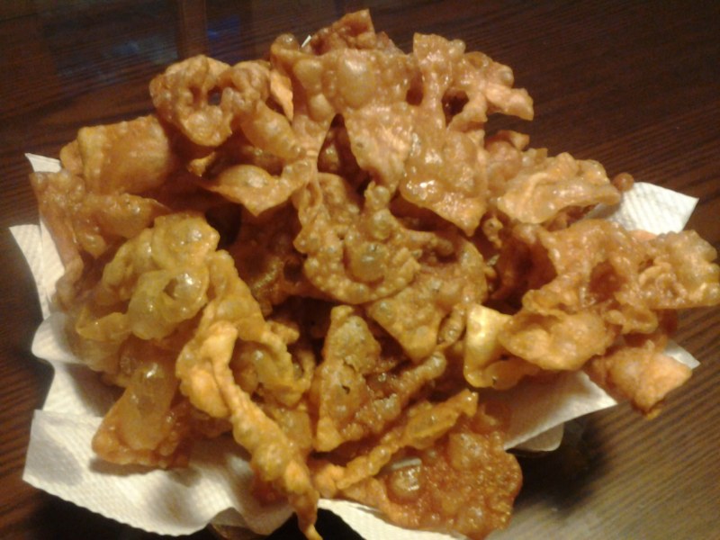 5:锅中加入油,油温5成热时下入鸡叉骨炸制。