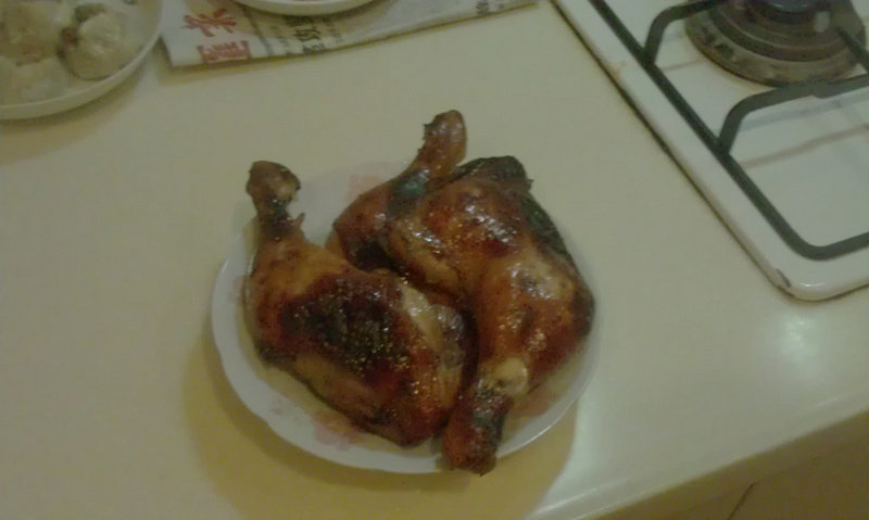 5:放入预热好的烤箱,华氏430度(摄氏220度)烤30分钟,中途刷一遍腌汁。