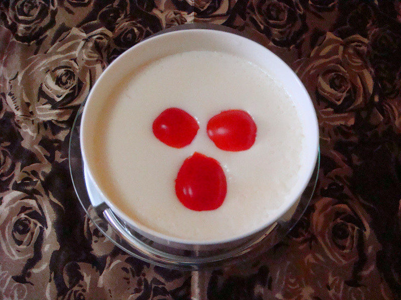 8:蒸好的双皮奶。奶皮下面的奶吃起来口感特别的嫩,有这层奶皮的保护,就是比直接做的牛奶蒸蛋细嫩很多。