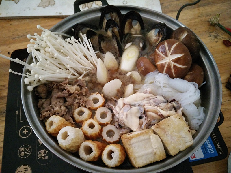 寿喜烧一般是沾生鸡蛋吃,我们很少能买到无菌鸡蛋,还是不建议沾生鸡蛋吃,用平时吃火锅的蘸料就可以;牛肉也可以先用油炒一下,半熟即可,这样锅底不会有太多的浮沫;如何吃完全根据自己的喜好来,寿喜烧最重要的就是锅底调味。吃到最后的火锅也就无法拍照片,杯盘狼藉。