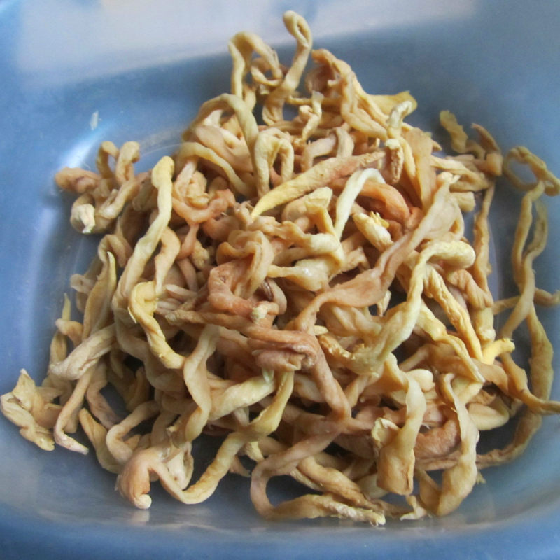 5:取适量晒干的萝卜,用厨房纸擦干灰尘,尝一下,有盐味,就不要放盐了。